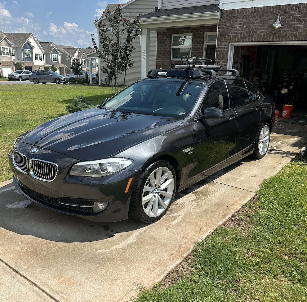 Hey all, just giving an update on my 2011 535i x drive college mobile. in the last year she has been rather needy, but nothing that I find unwarranted given the miles of the car. In the time since the last update post I have replaced the front axles, lower control arms, tie rod end links, and water pump. As I am writing this it is in the shop also getting a new front and rear Guibo and carrier bearing. I replaced my spark plugs myself at give or take 160k. I have also had the AC recharged (just took a second to get cold and wanted it at factory level. I have also had to replace the brake pad wear sensors (the brakes were fine?). switched to Ravenol RUP 5W40, has been fantastic, also flushed all driveline fluids with the correct spec Ravenol fluids, their distributor has been very good to work with on getting fluids flown over from Germany if not currently stocked. the 535 has been an excellent car to drive and I've thoroughly enjoyed the last 55k miles. I will say buying a near 15 year old German car and living in Clemson SC has made maintenance/ repairs tricky. if you are planning on buying an older f10 and you live in the middle of nowhere, plan accordingly and make sure to fix stuff preventively, if something fails, no one wants to work on it.