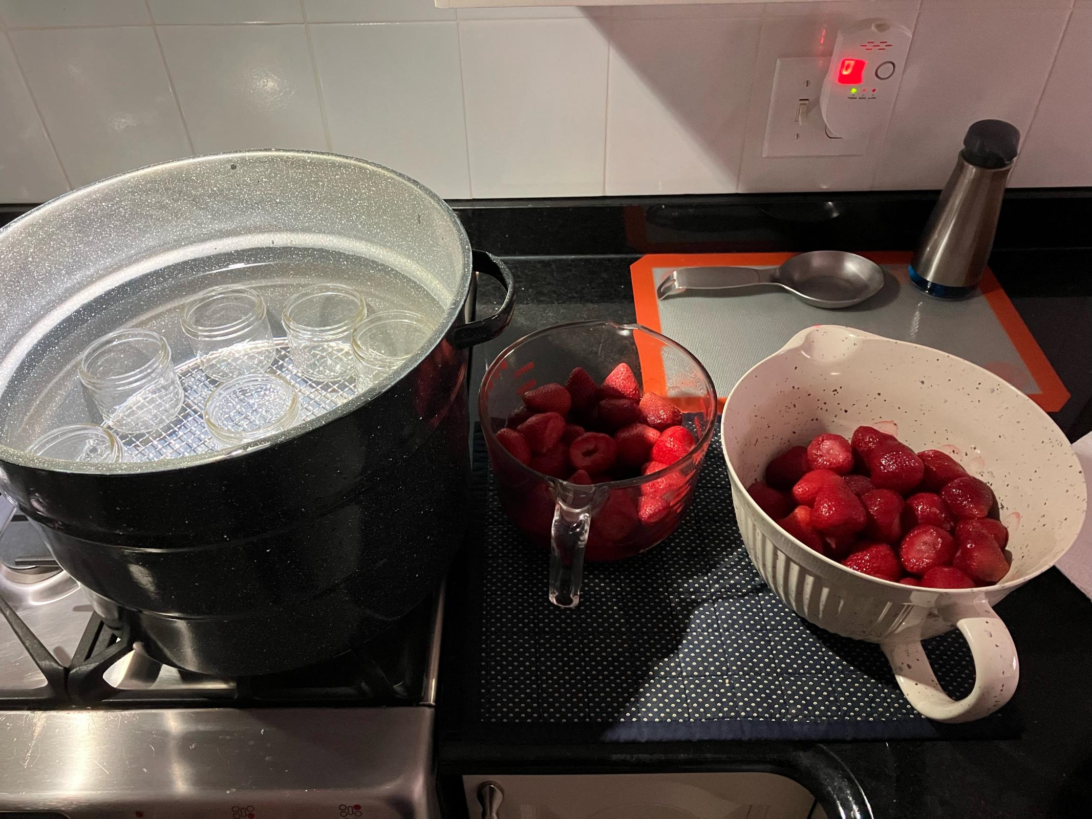 1. Starting with my frozen tomatoes, zucchinis and garlic in olive oil mix from last Summer's harvest. 2. Added olives, mushrooms, carrots, celery and onions. 3. Italian seasoning blend, red pepper flakes and peppercorn. 4. Added the frozen Italian meat balls and tomato paste. Slow convect for eight hours at 165°. The house smells delicious. ![]() |