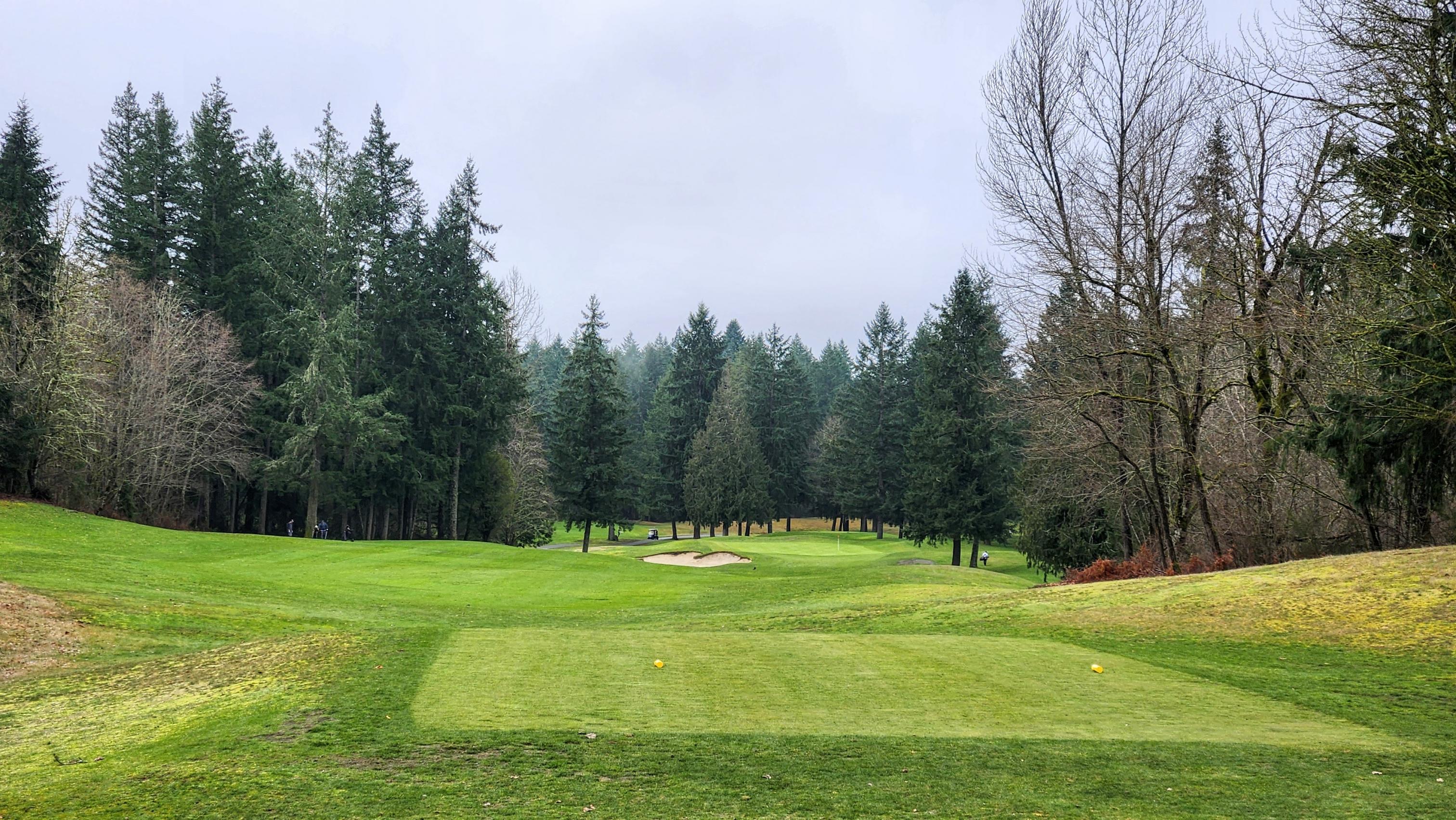 56 and dry, got in 18. The sun came out a couple holes after this one.