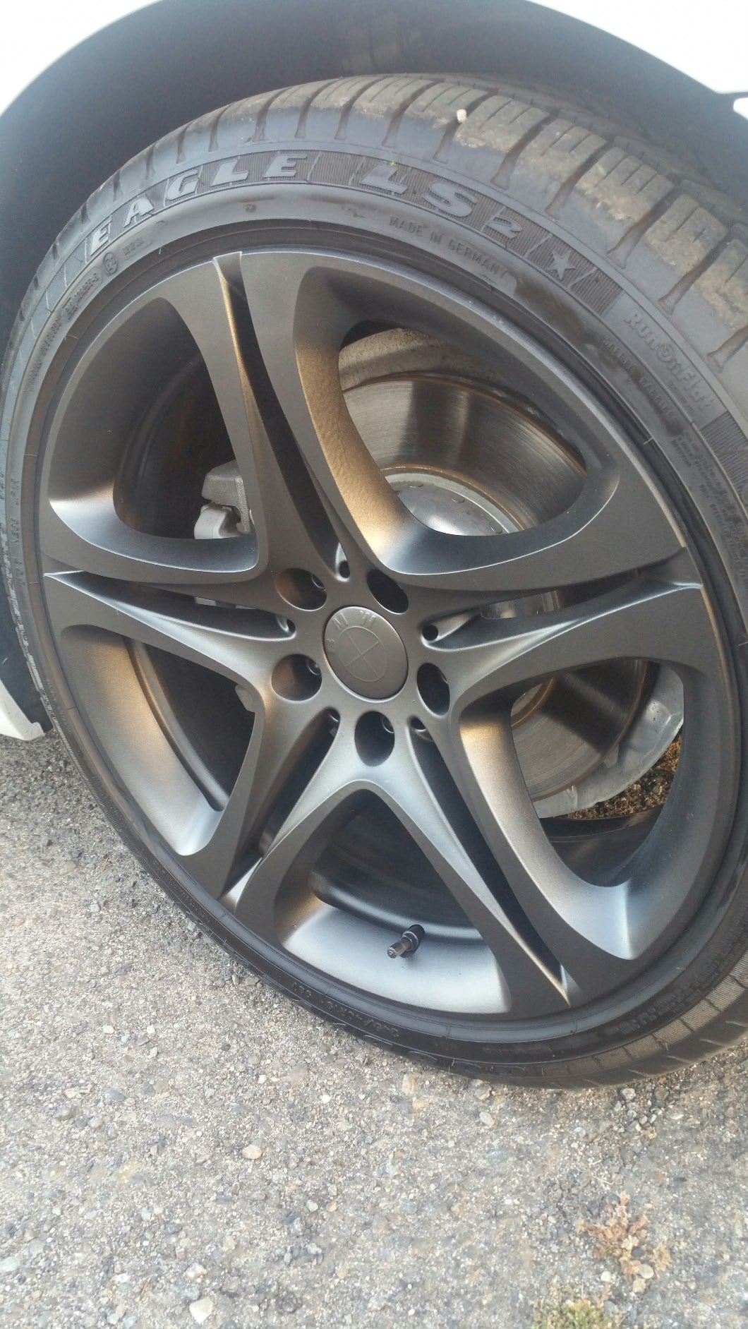 The roof is vinyl, the wheel is plasti dip. 2 different type of texture on the surface. Even thou I didn't use glossifier on my wheel but the guy at dipyourcar.com on his tutorial video for dipping wheel, he said graphite metallizer (the color I used on my wheel) acts just like glossifier. So that is the kind of shinny you can get. If you put more coats, maybe you get a bit more shiny.....but you will see the different obviously between dip and vinyl.
