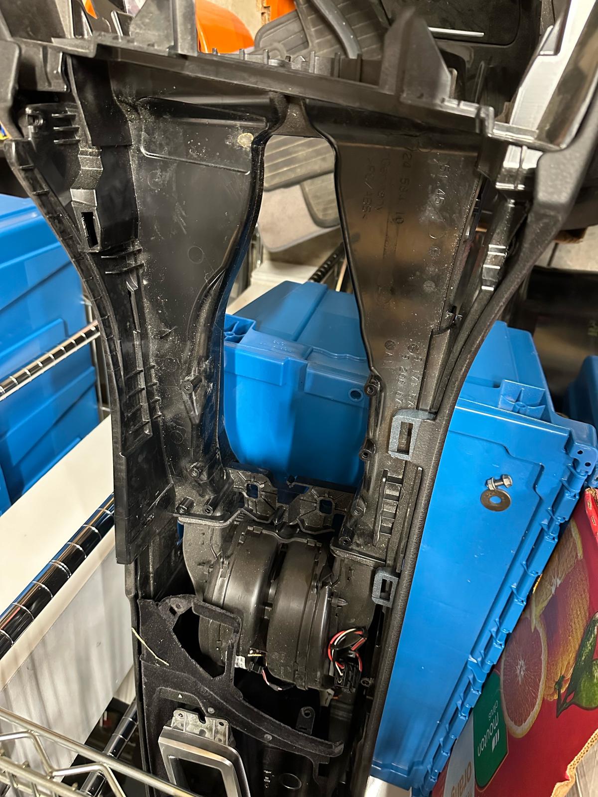 You can use duct tape for AC systems. Or if you want to do it right, you can replace that piece. Removing the center console is not bad. There’s only a few bolts holding it in place. I’ve seen more and more LCI F10 getting parted out now days.