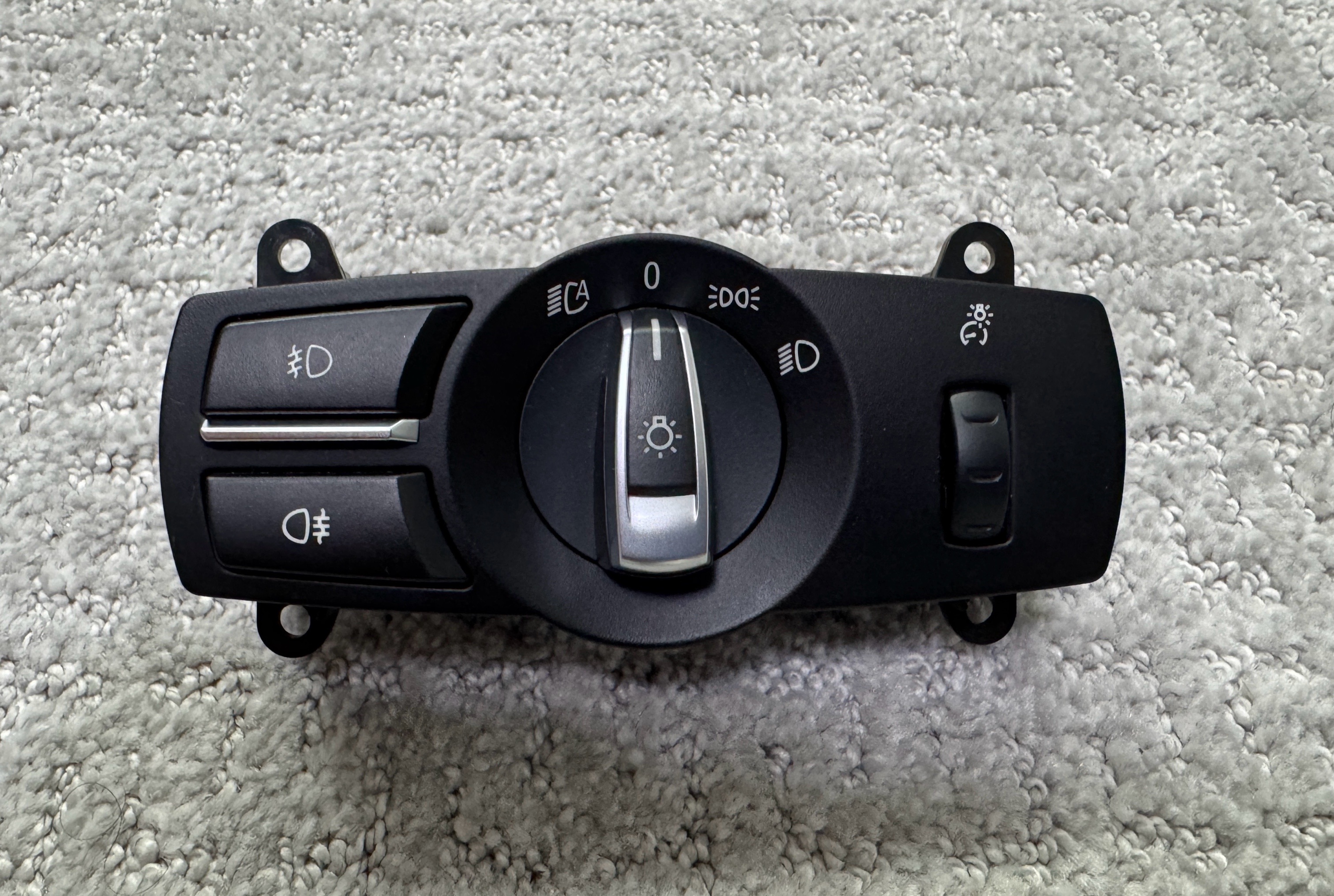 For sale is the Euro headlight switch with buttons for the front and rear foglights for the F10/F06 5/6 series. This is an easy modification that enables the rear foglight for US spec cars that don't come with the button from the factory. It uses the lights that normally only come on with the dynamic brake light function for increased rear visibility in rain and snow. No coding is required, and the switch cluster can be quickly swapped out. I recently sold my F10 with the stock switch cluster. The part is in great condition with no major marks or scratches. The price is shipped to CONUS, but make me an offer!