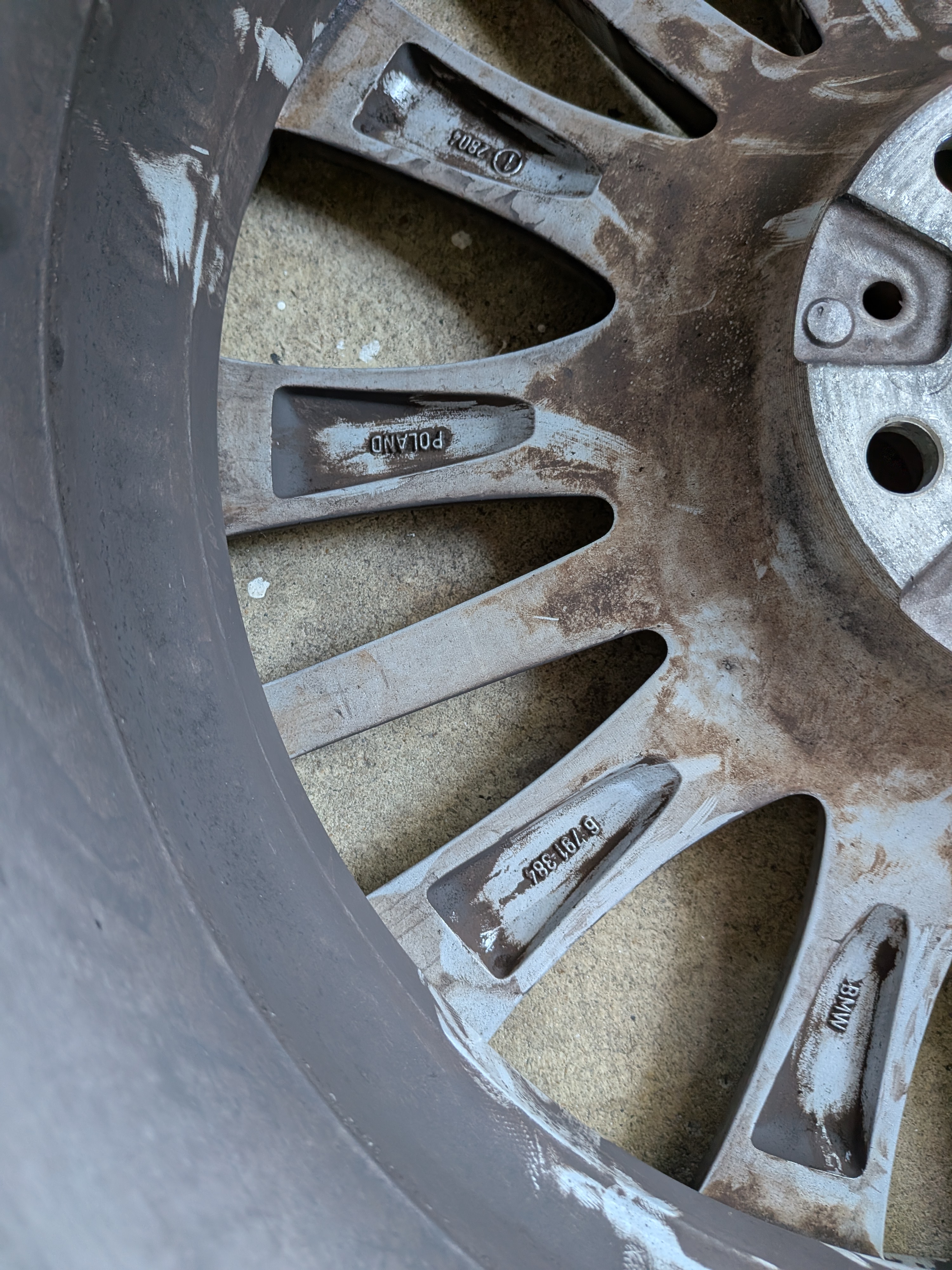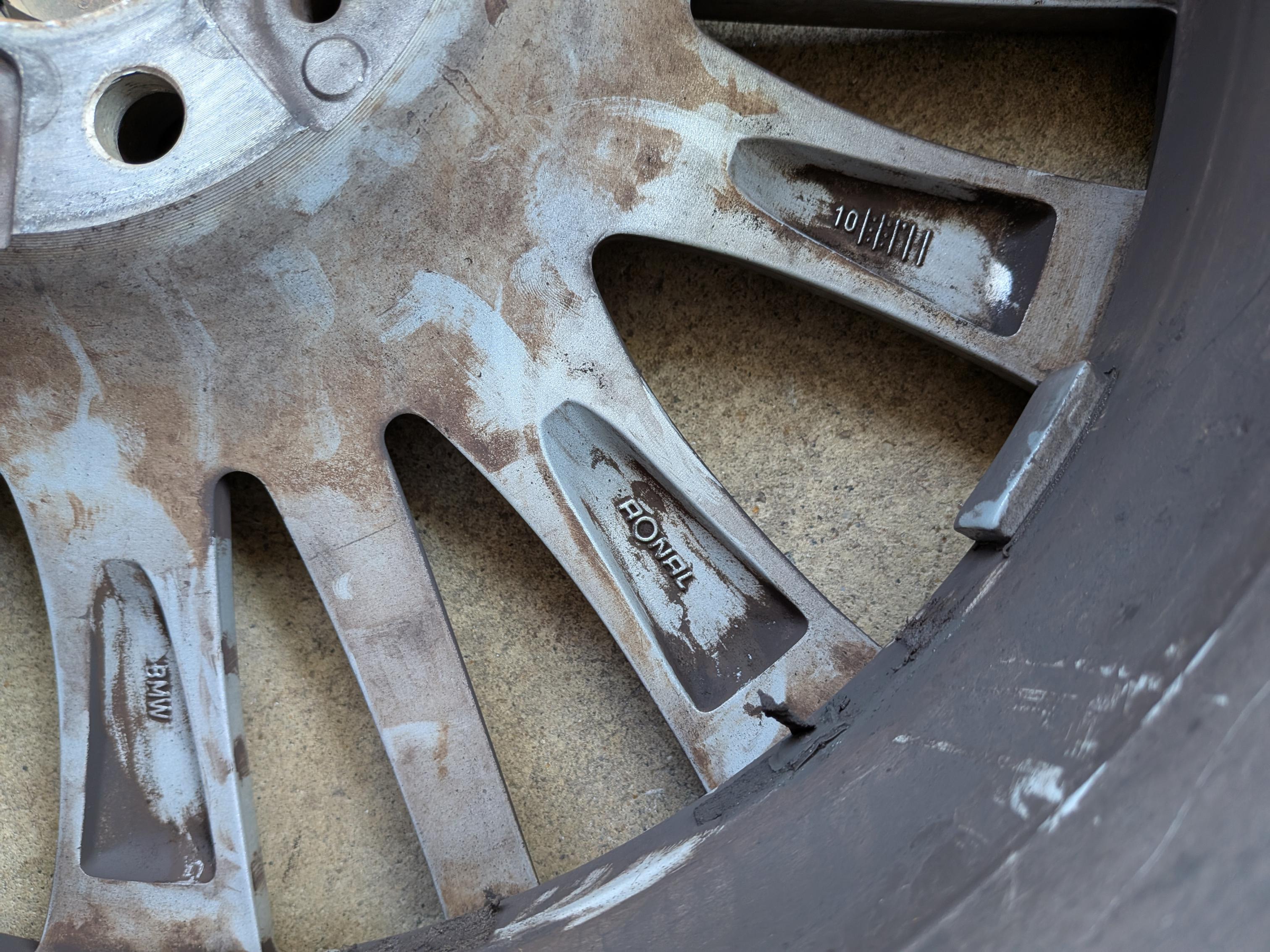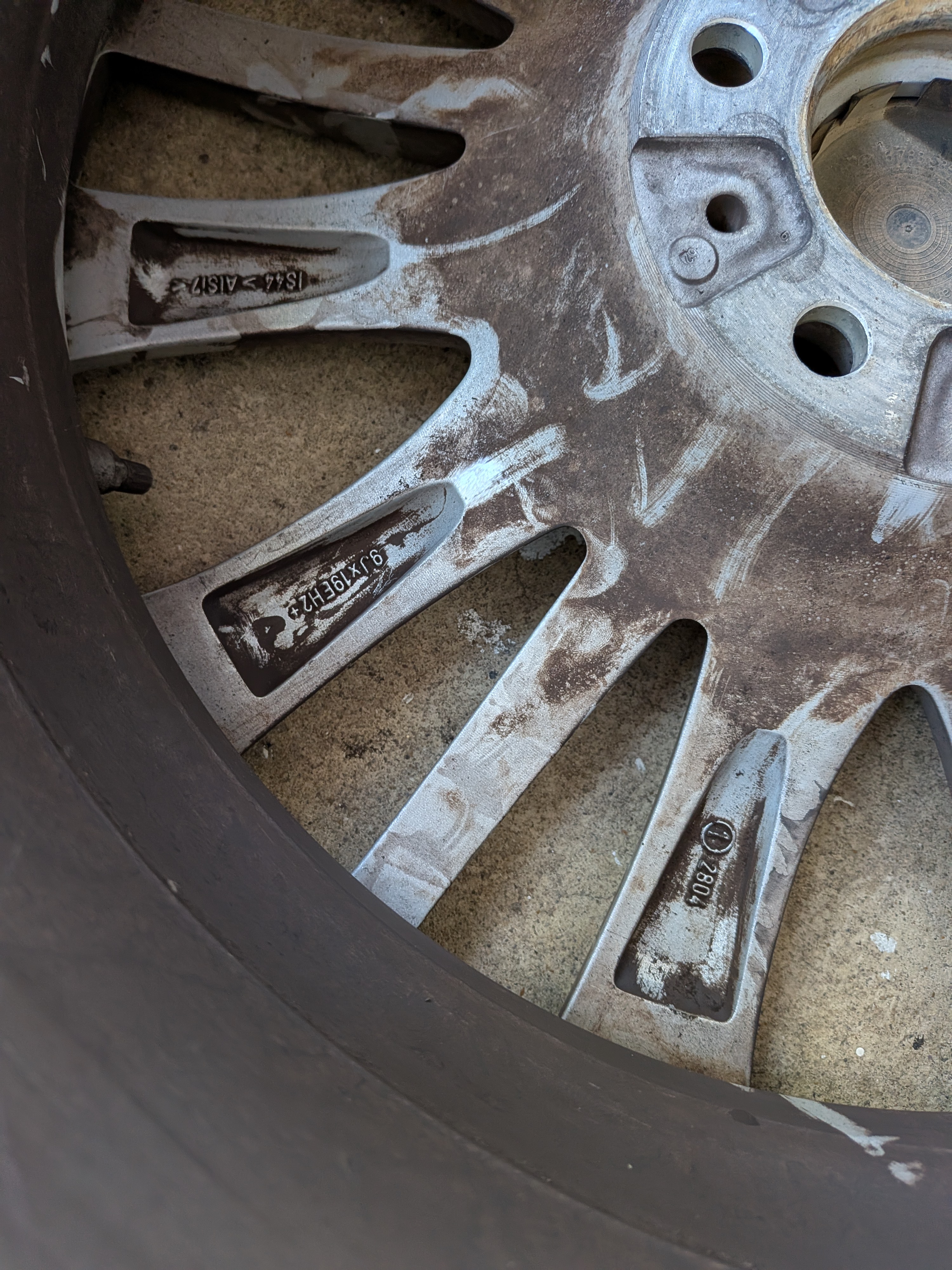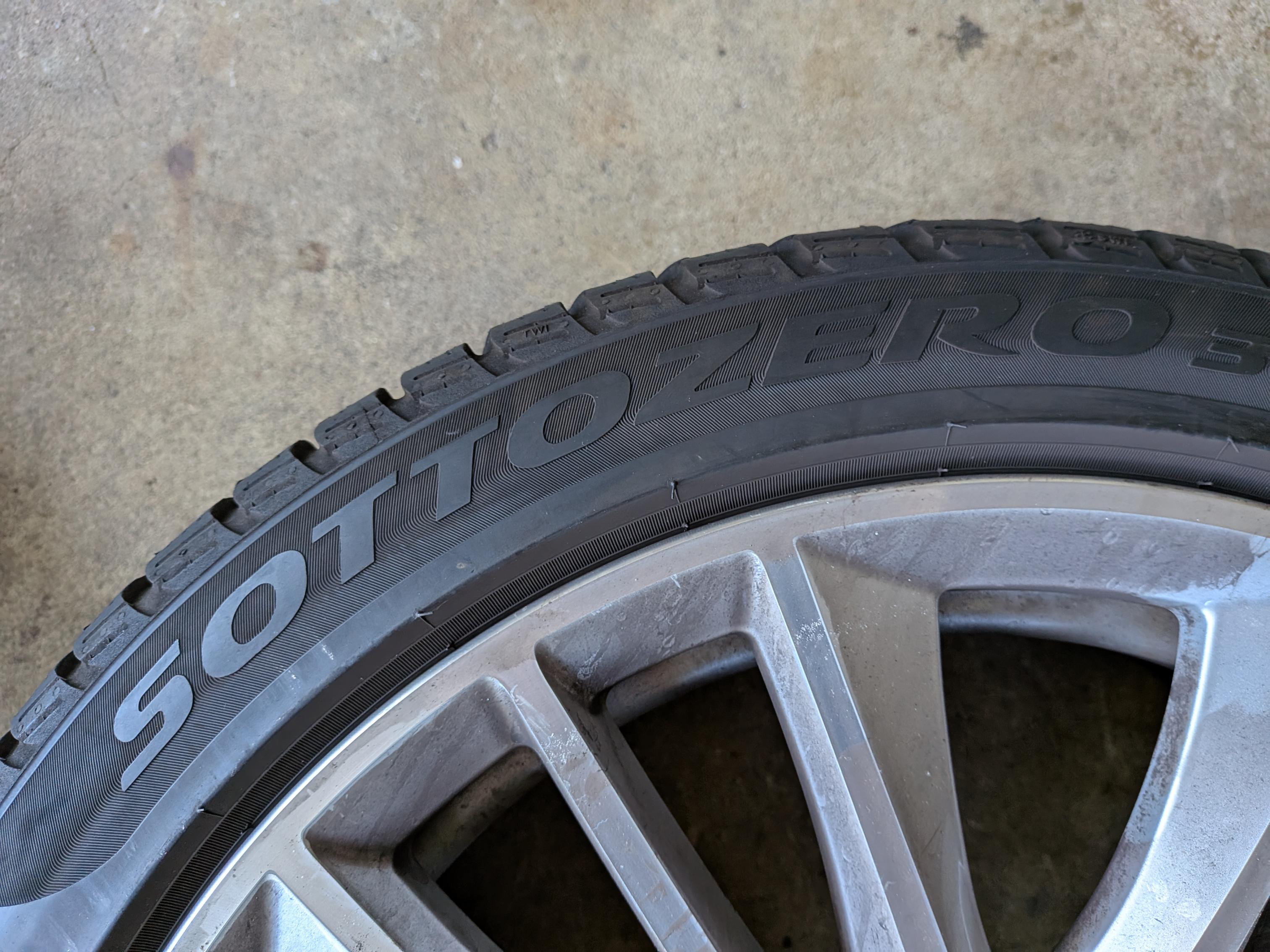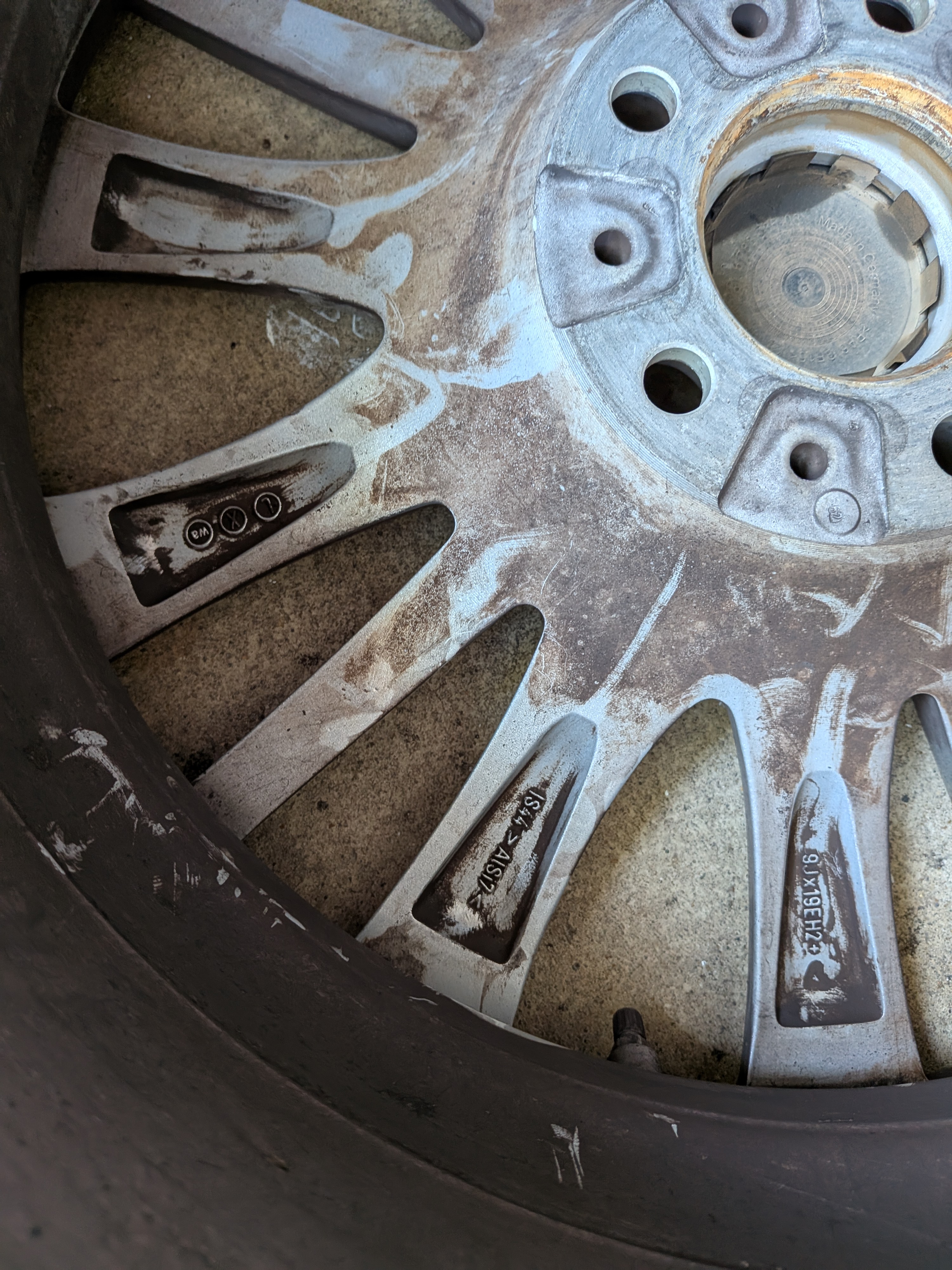 The is a set of BMW 19" rims mounted with Pirelli snow tires and TPMS. Rims came off a 7-series, not sure which year, but are in good shape with minimal rash. (A little brake-dusty from sitting in garage.) Take note that the rubber has two run-flats and two regulars, all matching Pirelli Sottozero3 245/40-R19. Why? Put the run flats in back, and soften up the ride by having regulars in front. The tires are numbered in the pics, and the tread depths are: RunFlat#1 5/32; RunFlat#2 4/32; Regular#3 7/32; Regular#4 7/32. The rims have the following writing/numbers on the inside of the spokes: RONAL; BMW; 6791384; POLAND; (Circled 1) 2804; 9JX19EH2+; IS44>AISI7<; 3 makers circles; blank; calendar code with 10, five bars, 7 dots. Hopefully these will match the style of rims you're looking for. The TPMS were mounted November of 2022. Not sure of the offset, but my F10 5-series needed 10mm spacer rings to clear the front calipers. If you want them, please add $40 to your offer. Located near Dulles Airport IAD in Northern Virginia. Local pickup; or I can deliver from Baltimore to DC to Fredericksburg for gas money; or if you make arrangements for a shipper to come to my house I'll help get them loaded. |